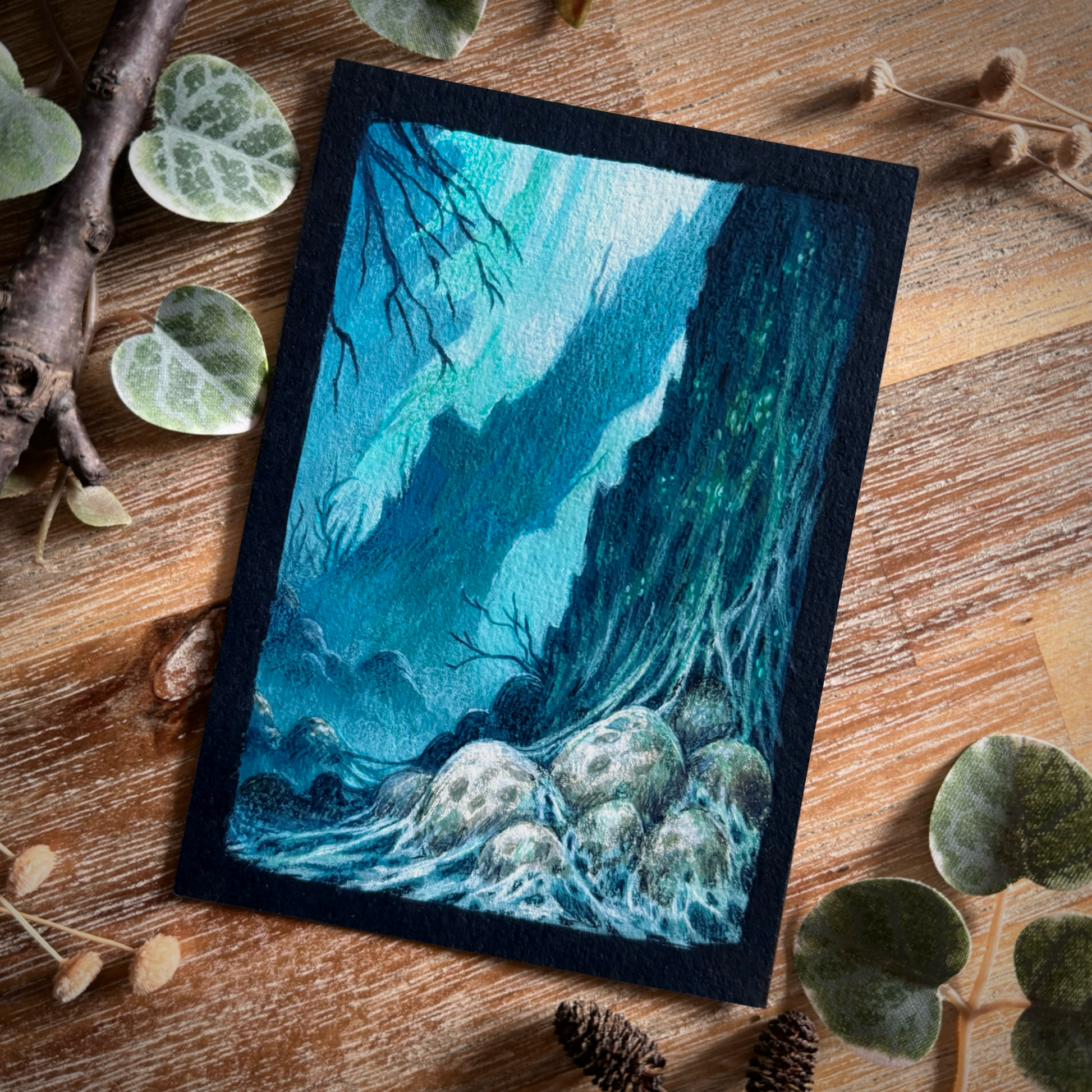 Original mixed media painting on black paper. #06 of Lindentober 2024.